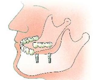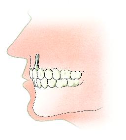Nadat één of meer implantaten in het kaakbot zijn verankerd, plaatst de tandarts hierop de kroon, brug of prothese. Hij neemt daarvoor onder plaatselijke verdoving soms eerst een klein stukje van het tandvlees boven het implantaat weg.