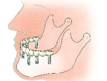 Nadat één of meer implantaten in het kaakbot zijn verankerd, plaatst de tandarts hierop de kroon, brug of prothese. Hij neemt daarvoor onder plaatselijke verdoving soms eerst een klein stukje van het tandvlees boven het implantaat weg.